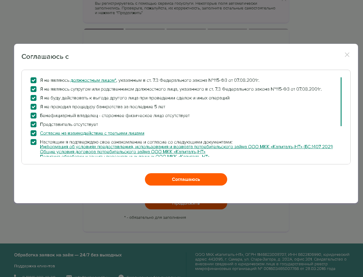 Для оформления займа единожды требуется заполнить анкету, в основном стандартную "как у всех". Для анкеты требуется: