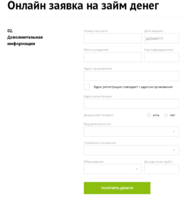Анкета очень маленькая, всего 2 страницы, информации для заполнения минимум, паспорт, место жительства, рабочий номер телефона и контактное лицо.
