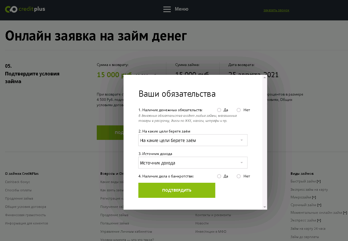 - стандартный микрозайм;