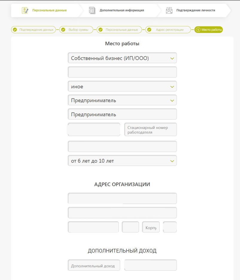 Онлайн анкета стандартная, требуется заполнение паспортных данных, данные о месте жительства, работы и среднем заработке. Потом осуществляется привязка карты, указывается сумма и далее.