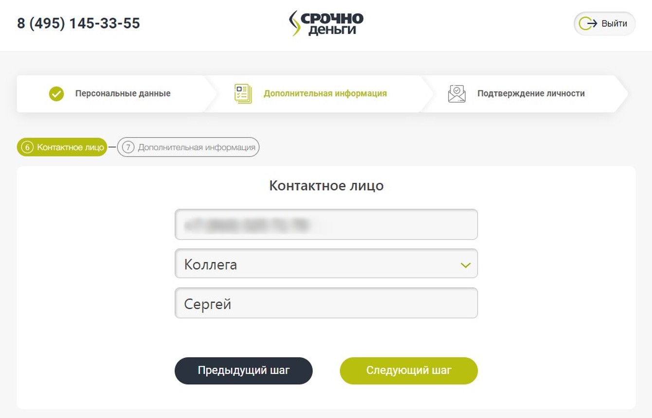 Доп. контакт - 1 шт. спрашивают разрешения кому-то позвонить, делают при вас, нужно чтобы человек по телефону ответил, знает ли он вас и кем приходится.