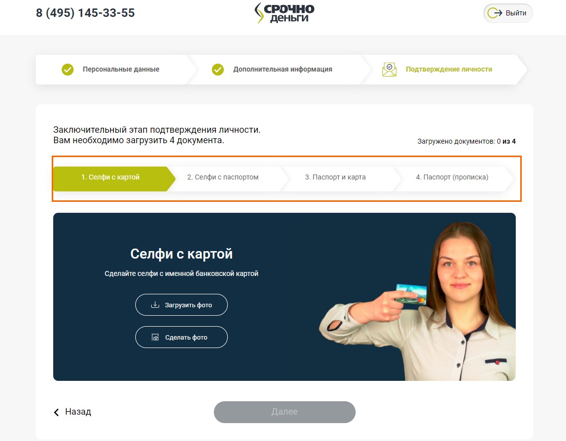 Для подтверждения данных потребуется загрузить 4 скриншота: