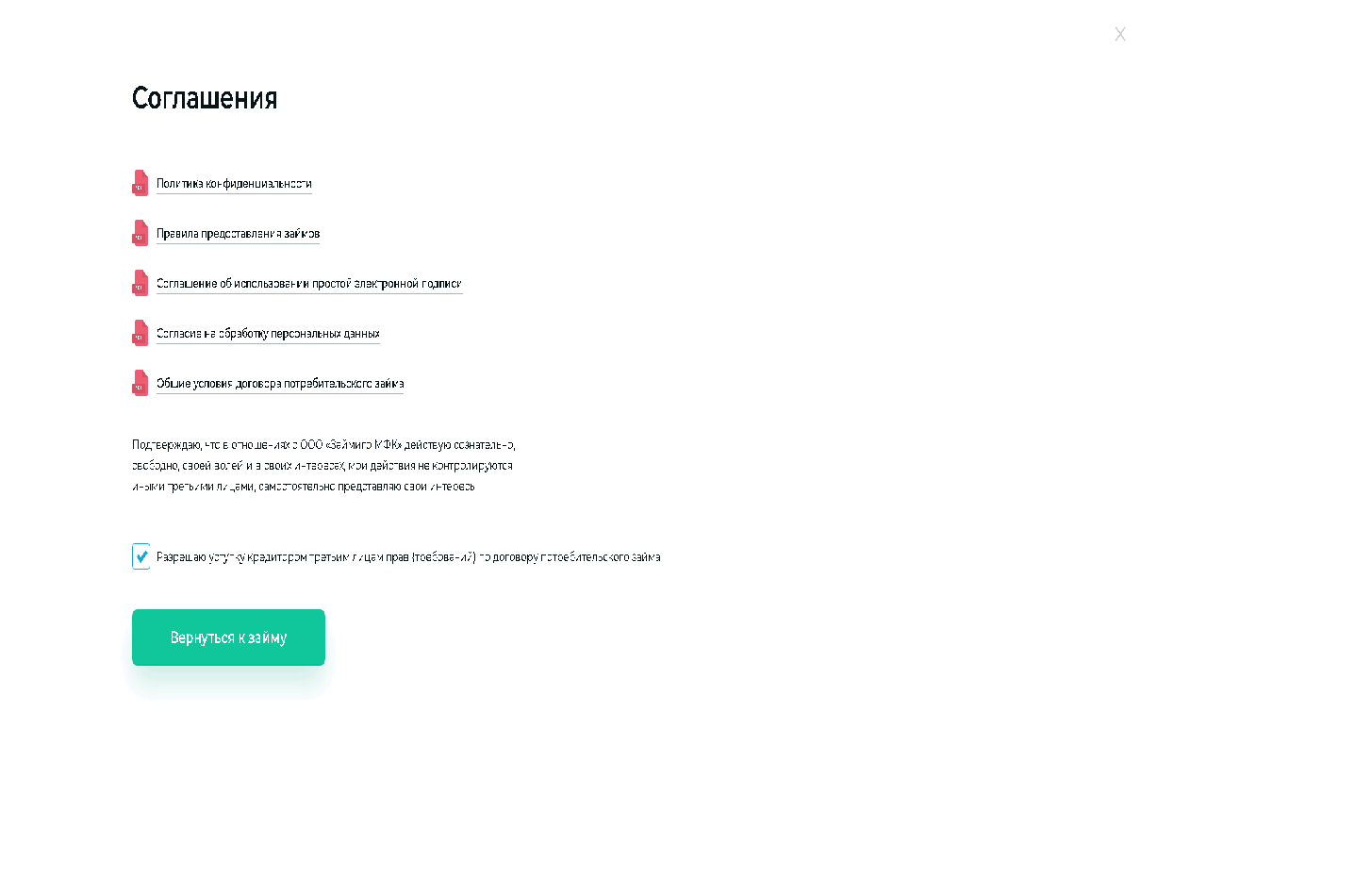 Анкета простая, ничего лишнего. Паспортные данные, прописка, контактное лицо и банковская карта. Её можно заполнить через Госуслуги. На первой странице анкеты нажимаем на кликабельный текст с условиями и снимаем там галку об уступке кредитором права требования по займу третьим лицам (это чтобы коллекторам не отдавали).